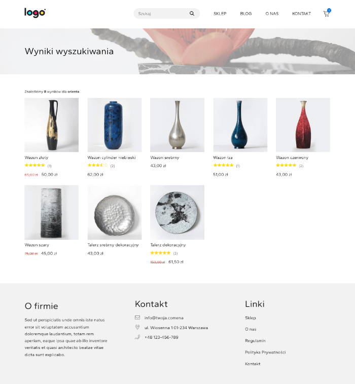 Przykładowy projekt strony z wynikami wyszukiwania.