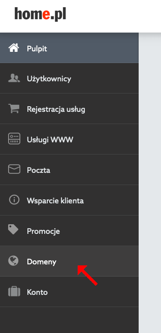 1. Zaloguj się do Home.pl i przejdź do zakładki Domeny.